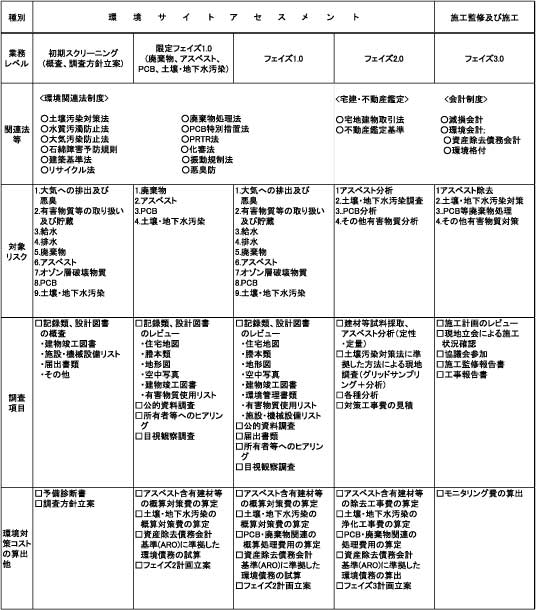 土壌汚染、アスベスト、PCB、オゾン層破壊物質、廃水、油などの環境リスクに対し、調査から対策工事まで一貫したノウハウを有する専門家が提携し、高品質・迅速なサイトアセスメントを実践します。